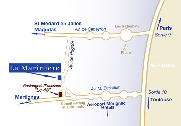 Son emplacement près de la rocade bordelaise (Sortie 10) proche de l’aéroport de Mérignac et de son parc hôtelier rend son accès aisé.